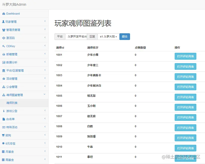 运维后台链接:http://IP:7200,账号:admin,默认密码:123456,运维后台功能很强大,可以查看玩家,工会,卡牌等等信息。如果想修改默认密码,需要修改数据库 dldl-gm 表 admins 中的 password 字段。