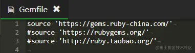再修改文件 /home/root/dldl-gm/Gemfile,在文件头部添加 source 'https://gems.ruby-china.com/',将其他 source 前添加 # 注释掉。