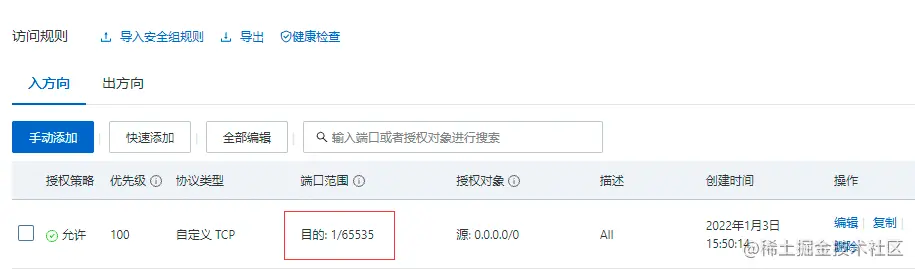 我们直接开放所有端口1-65535,阿里云服务器在安全组中配置规则。