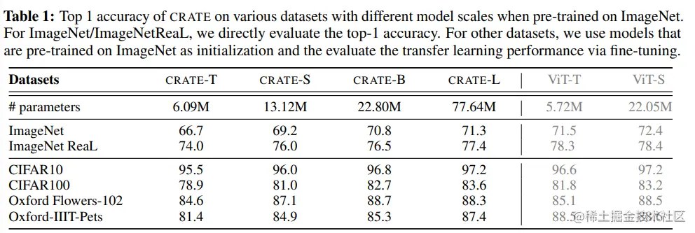 2、尽管CRATE架构很简单,但实验结果应当验证该架构的巨大潜力,即可以在大规模真实世界的数据集和任务上取得与高度工程化Transformer模型相匹配的性能。