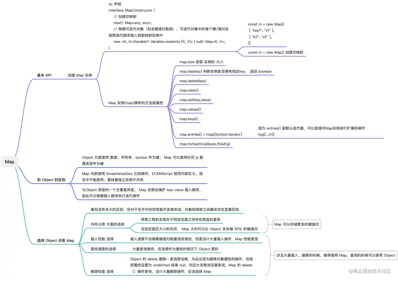 ES6 前,js 中 key-value 键值对储存可以使用 Object 来高效的完成,使用对象属性作为键,再使用属性来引用值,ES6 新增了 map 集合类型,这是真正的键/值对储存机制。