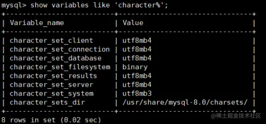 - character_set_results:服务器向客户端返回数据时使用的字符集