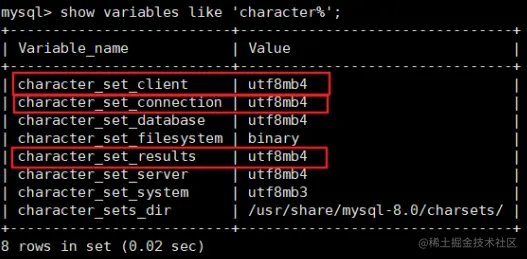 | character_set_results | 服务器向客户端返回数据时使用的字符集 |
