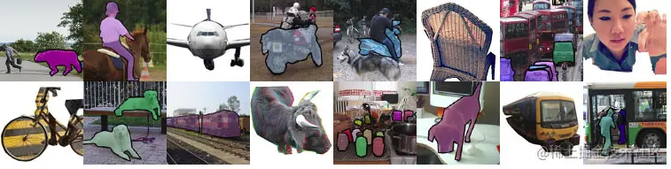 包括一个标注了的图像数据集和五个不同的竞赛:分类、检测、分割、动作分类、人物布局。分割的竞赛很有趣:他的目标是为测试集里的每幅图像的每个像素预测其所属的物体类别。有21个类,包括轮子、房子、动物以及其他的:飞机、自行车、船、公共汽车、轿车、摩托车、火车、瓶子、椅子、餐桌、盆栽、沙发、显示器(或电视)、鸟、猫、狗、马、绵羊、人。如果某像素不属于任何类,那么背景也会考虑作为其标签。该数据集被分为两个子集:训练集1464张图像以及验证集1449张图像。测试集在竞赛中是私密的。争议的说,这个数据集是目前最受欢迎的语义分割数据集,因此很多相关领域卓越的工作将其方法提交到该数据集的评估服务器上,在其测试集上测试其方法的性能。方法可以只用该数据集训练,也可以借助其他的信息。另外,其方法排行榜是公开的而且可以在线查询。