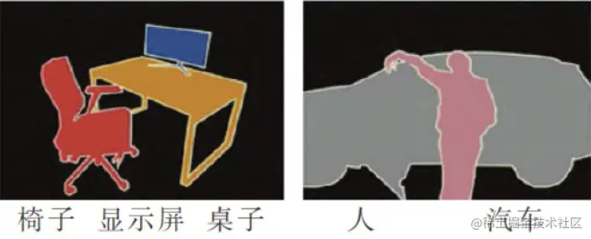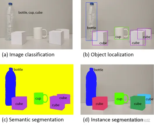 首先说说他们的共性,语义分割和实例分割都是从图像中分割出目标有效区域,即预测每个像素点所属的类别。不同的是语义分割不区分同类目标,而实例分割则需要区分同类目标的不同个体。如图2所示,两种分割方式均可以分割出各个目标的有效区域,不同的是示例分割可以区分不同的目标个体,如cube。