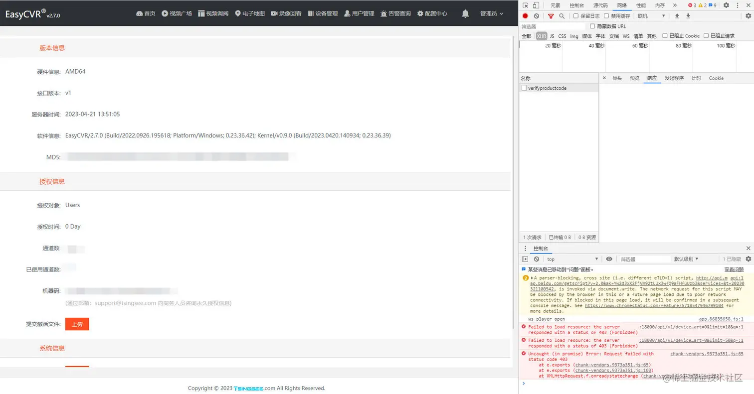 有用户反馈,使用2.7版本EasyCVR上传授权文件不生效,且无任何提示,于是请求我们协助排查。