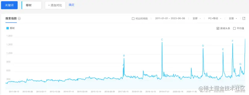从百度指数也可以看到,在诸多擦边事件的舆论发酵下,椰树从热度到销量上都成为了妥妥的赢家。