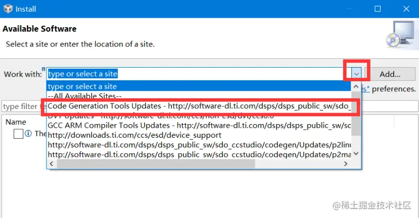 2) 选择 “Code Generation Tools Updates– software-dl.ti.com/dsps/dsps_p… n32”