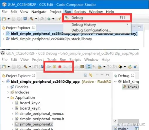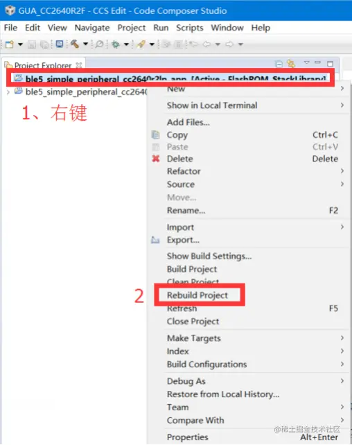 其中,路径为 “C:\ti\simplelink_cc2640r2_sdk_1_40_00_45\examples\rtos\CC2640R2_LAUNCHXL\ble5 stack\simple_peripheral\tirtos\ccs” 。