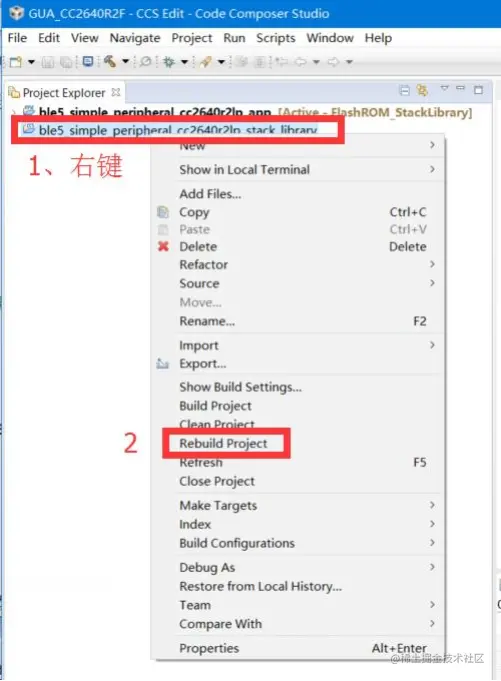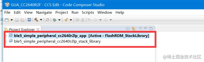上述我们导入了工程代码的 app(应用程序,我们所需要开发的部分)和 stack_libraty(协议栈的库, TI 公司实现了蓝牙协议)。