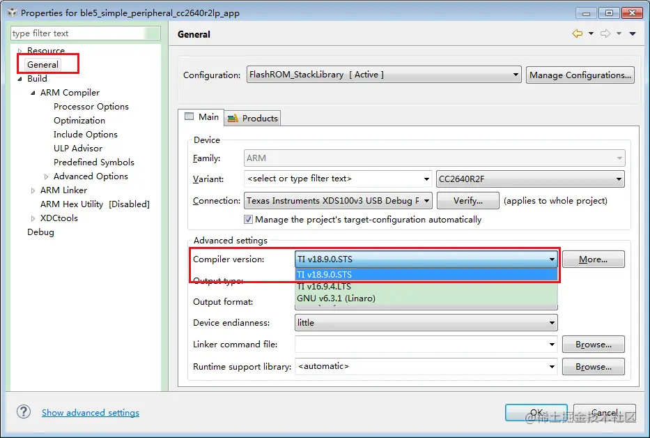 3) 选择最新的 ARM 编译器 ARM Compiler Tools 18.9.0