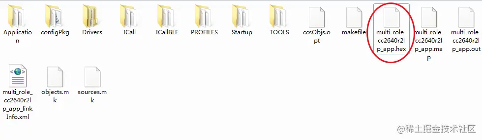 编译生成的hex文件在如 CC2640R2F_Workpace\multi_role_cc2640r2lp_app\FlashROM_StackLibrary 下的multi_role_cc2640r2lp_app.hex