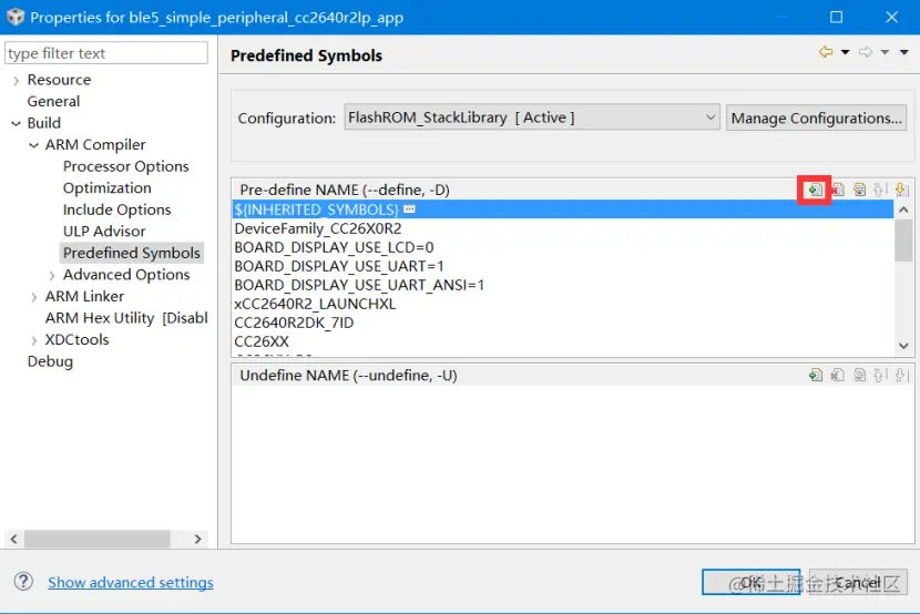 这里的 Predefined Symblols 区域是预编译宏的合集,表示代码中包含了这些宏。