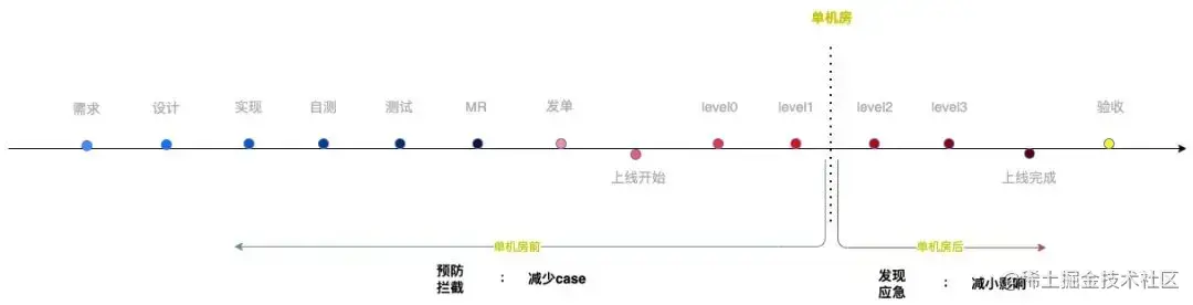 在回顾历史 case 时,统计发现90%的 case 可以在发布初期乃至测试阶段被拦截住。搜索在稳定性建设初期就考虑往拦截这块使劲,核心动作如下: