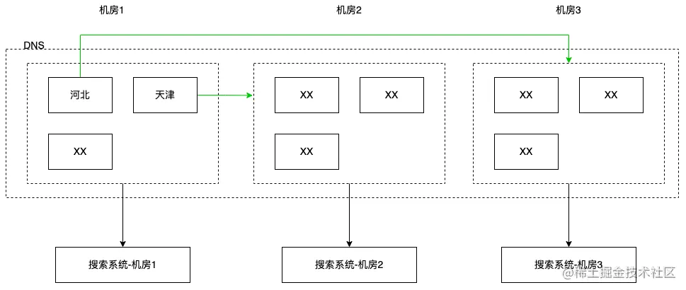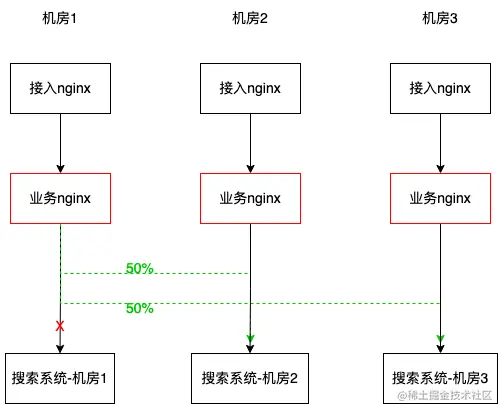 服务粒度的切流能力,将大搜某一个机房的流量按照 nginx 粒度切至其他机房,会覆盖所有域名进入得流量。相比于 DNS 切流,其生效更快(1分钟生效),操作粒度更大(所有这个机房的流量都会被切走)。