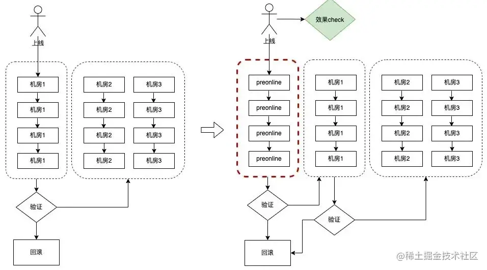预发布-->单台-->各机房单台-->单机房-->剩余全机房