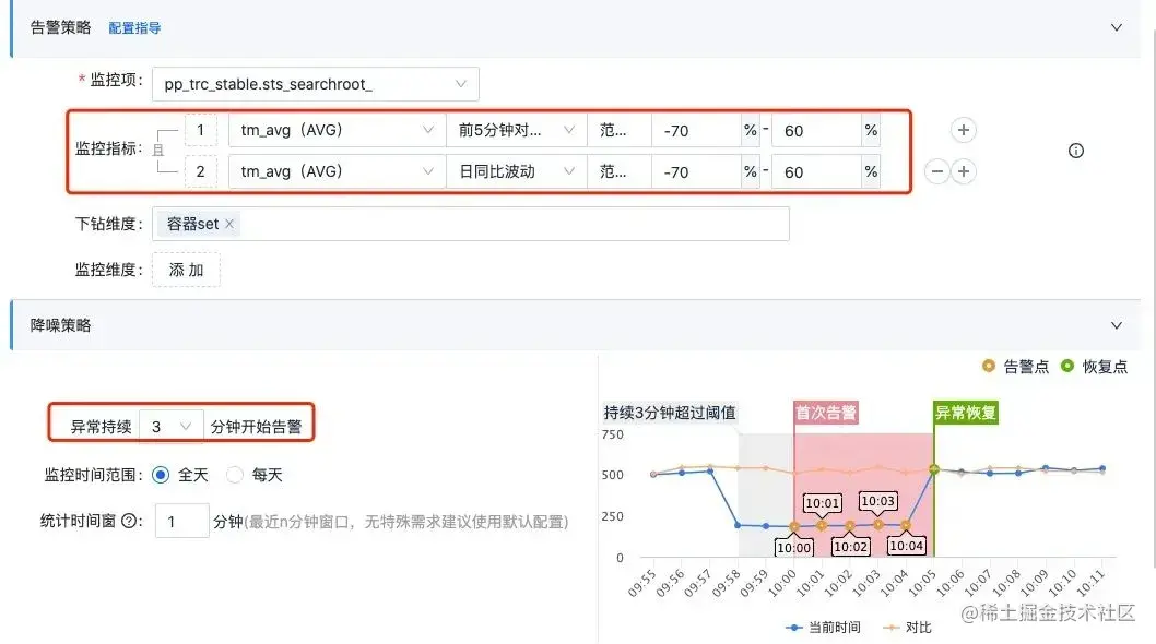 统计指标是基于用户行为的监控,如 pv、uv、点击、曝光、收入等,这些会直观体现系统的变化;也如用户反馈 case 量的变化,这也是事故定级规范中的一个定级维度,单位时间用户反馈量突增一定代表系统某方面的表现存在重大异常并让用户不满意;也如终端可达性监控,对各类终端在各个省份、各个运营渠道成功率、pv 的变化实时监控,也做到了终端层面的监控等。统计指标应关注时延,时延较差的指标其告警意义就较弱。