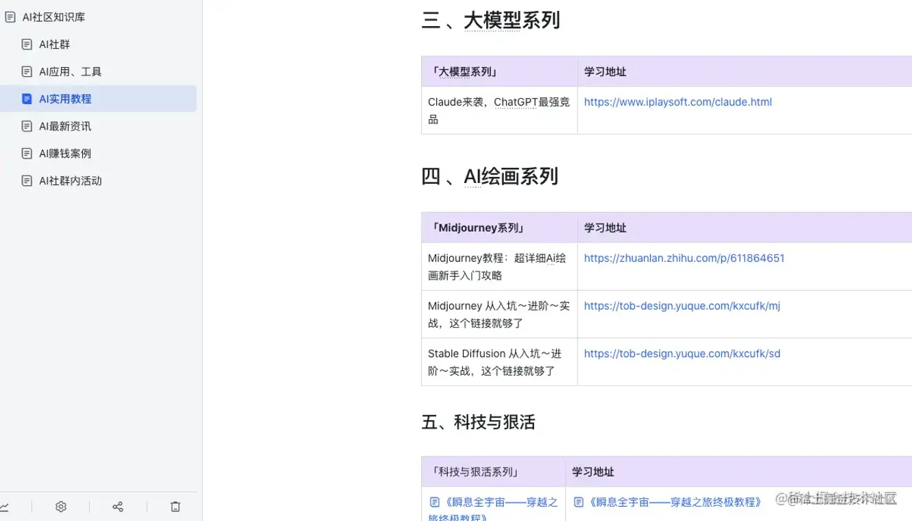 里面包含了:AI最新资讯、AI应用、工具、AI实用教程、AI赚钱案例等。