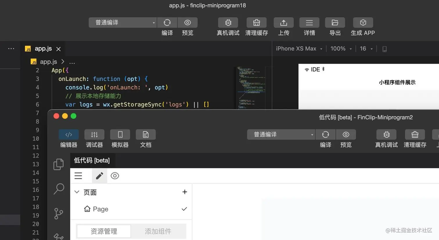 新版本的 FinClip Studio 大幅度提升了小程序代码预览渲染过程的性能,不仅降低了编译过程中的耗时,还增加了诸如编辑体验优化,代码提示自动补全,项目多开功能,还支持小程序低代码开发功能,后续我们还将尽快完成小程序插件与多语言支持能力。