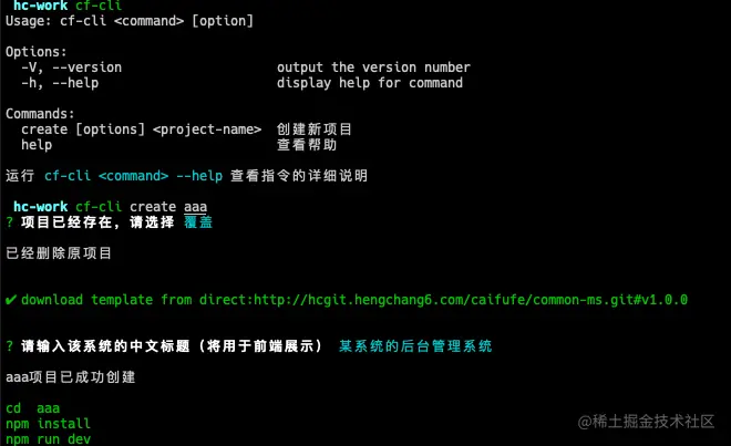 2.当用户执行cf-cli create aaa 时,就会在开始当前目录下新建一个aaa 的项目。