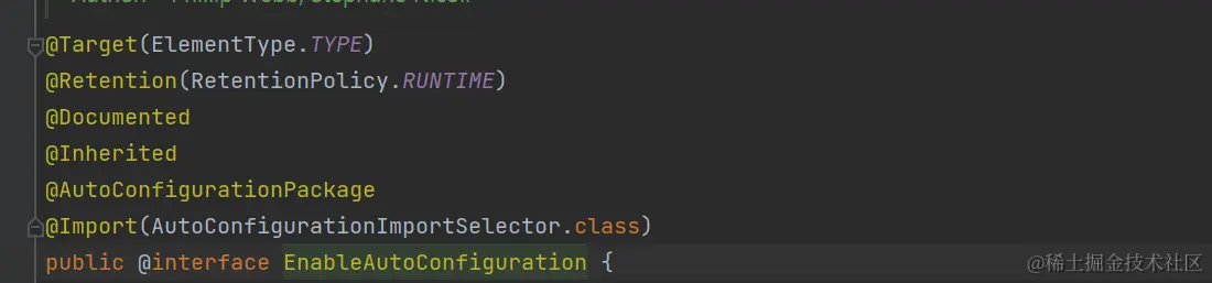 2. @EnableAutoConfiguration 自动配置类的核心,主要由两个注解组成,@Import与@AutoConfigurationPackage,import注解是自动配置的核心机制,AutoConfigurationPackage表示当前类所在包报名是自动配置的包