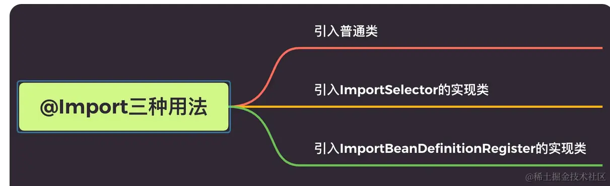 ImportSelector中selectImports方法要求返回一个全类名数组,给到@Import 注解,执行bean的注册。