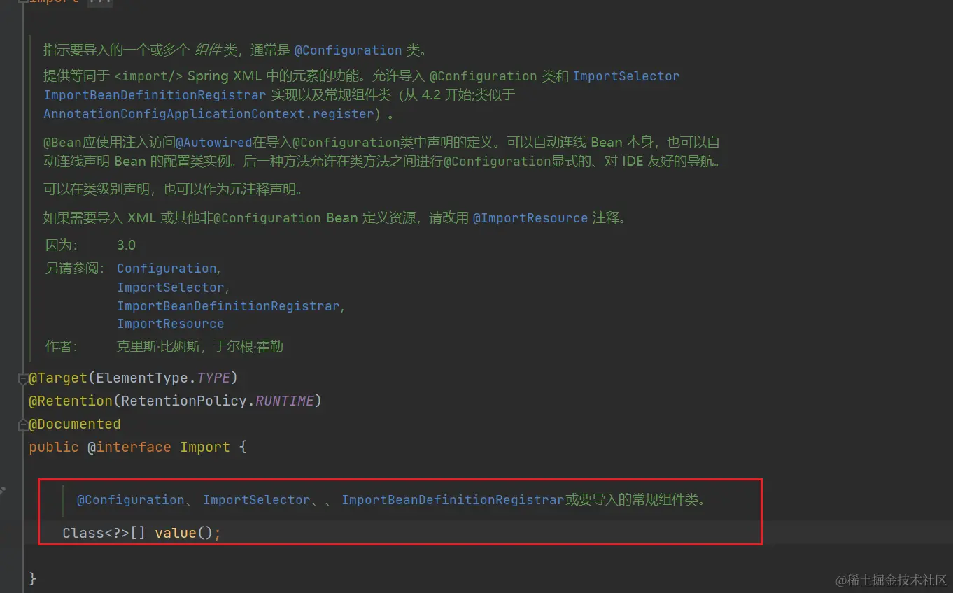 括号中的类可以是个具体的类的集合(表示直接引入这些类,这个和@Bean差不多,不是这个注解的重点),也可以是实现ImportSelector接口的类(AutoConfigurationImportSelector.class就是这种,可以自定义导入包的逻辑,并做些自定义过滤),也可以是实现ImportBeanDefinitionRegistrar接口的类