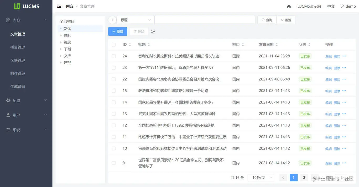 - 中文演示站:demo.ujcms.com