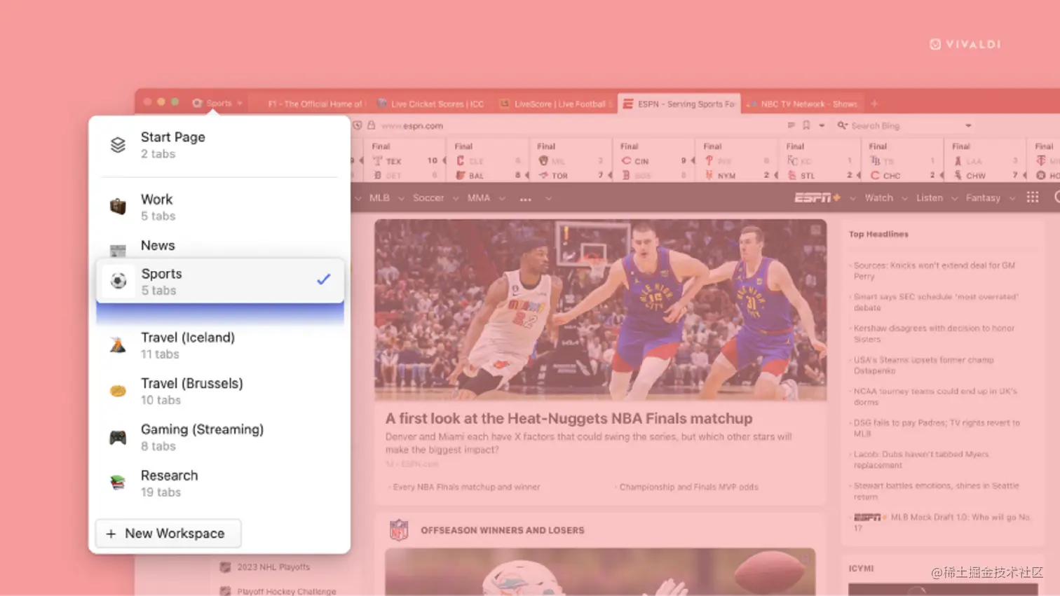在 Vivaldi 6.0 中,Vivaldi 在桌面上引入了工作空间。Vivaldi 6.1 继续改进工作空间,现在用户可以根据你的喜好或者工作流程拖放和重新排列不同的工作空间。