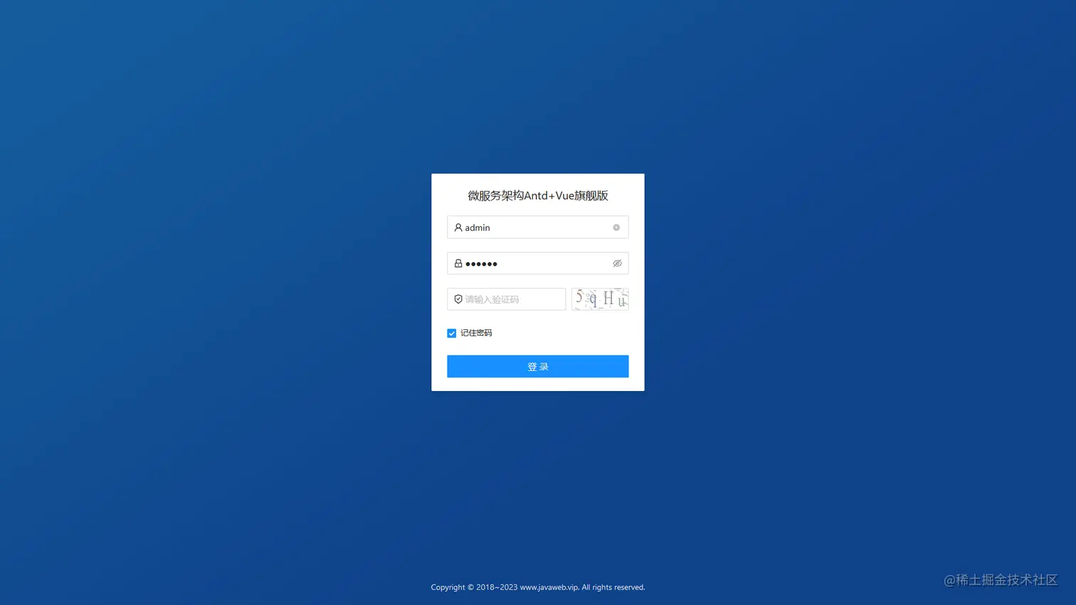一款 Java 语言基于 SpringCloud、SpringSecurity、Eureka、OAuth2、Vue3.x、AntDesign、MySQL 等框架精心打造的一款前后端分离框架,致力于实现模块化、组件化、可插拔的前后端分离架构敏捷开发框架,可用于快速搭建前后端分离后台管理系统,本着简化开发、提升开发效率的初衷,目前框架已集成了完整的 RBAC 权限架构和常规基础模块,前端 Vue 端支持多主题切换,可以根据自己喜欢的风格选择想一个的主题,实现了个性化呈现的需求;为了敏捷快速开发,提升研发效率,框架内置了一键 CRUD 代码生成器,自定义了模块生成模板,可以根据已建好的表结构 (字段注释需规范) 快速的一键生成整个模块的所有代码和增删改查等等功能业务,真正实现了低代码开发,极大的节省了人力成本的同时提高了开发效率,缩短了研发周期,是一款真正意义上实现组件化、低代码敏捷开发框架。