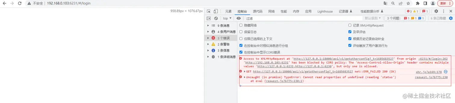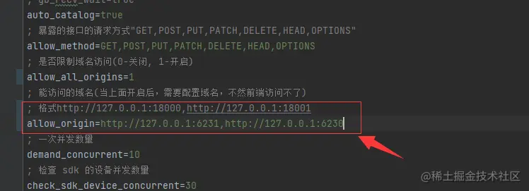 在排查中发现,当配置一个跨域域名时,可以正常访问接口,配置两个后就会出现跨域问题。