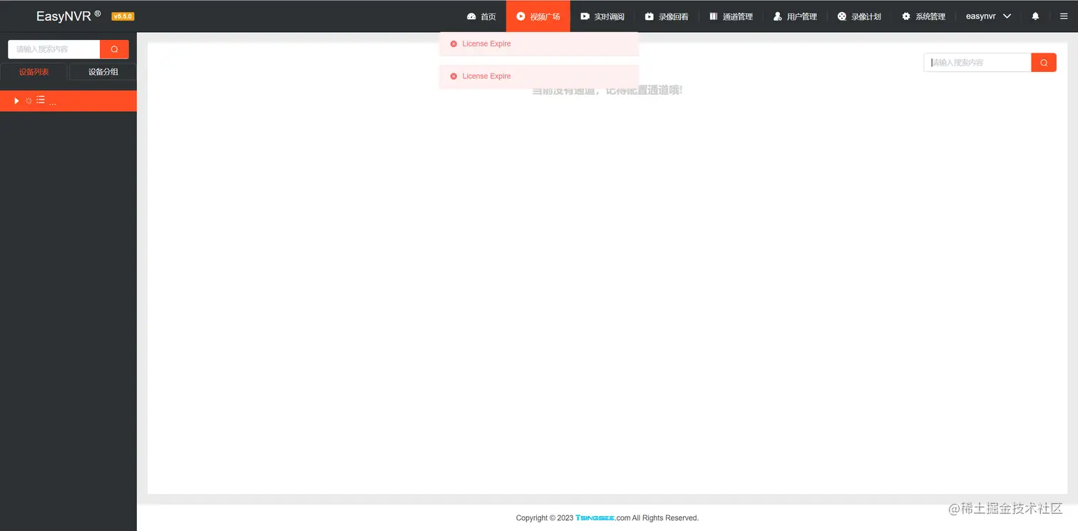 EasyNVR平台优秀的视频能力在于通过RTSP/ONVIF协议,将前端接入设备的音视频资源进行采集,并转码成适合全平台、全终端分发的视频流格式,包括RTSP、RTMP、FLV、HLS、WebRTC等格式。平台可拓展性强、部署轻快,在安防监控领域有着广泛的使用场景,包括智慧工地、智慧工厂、智慧景区、智慧水利等等。