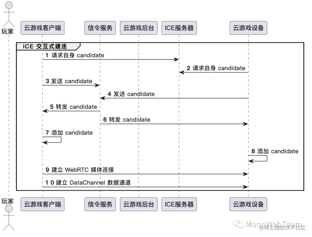 到这个时候,云游戏 WebRTC 建连的双方,即云游戏客户端和云游戏设备端,已经具备了初始化的信息,可以进入 WebRTC 建连阶段。