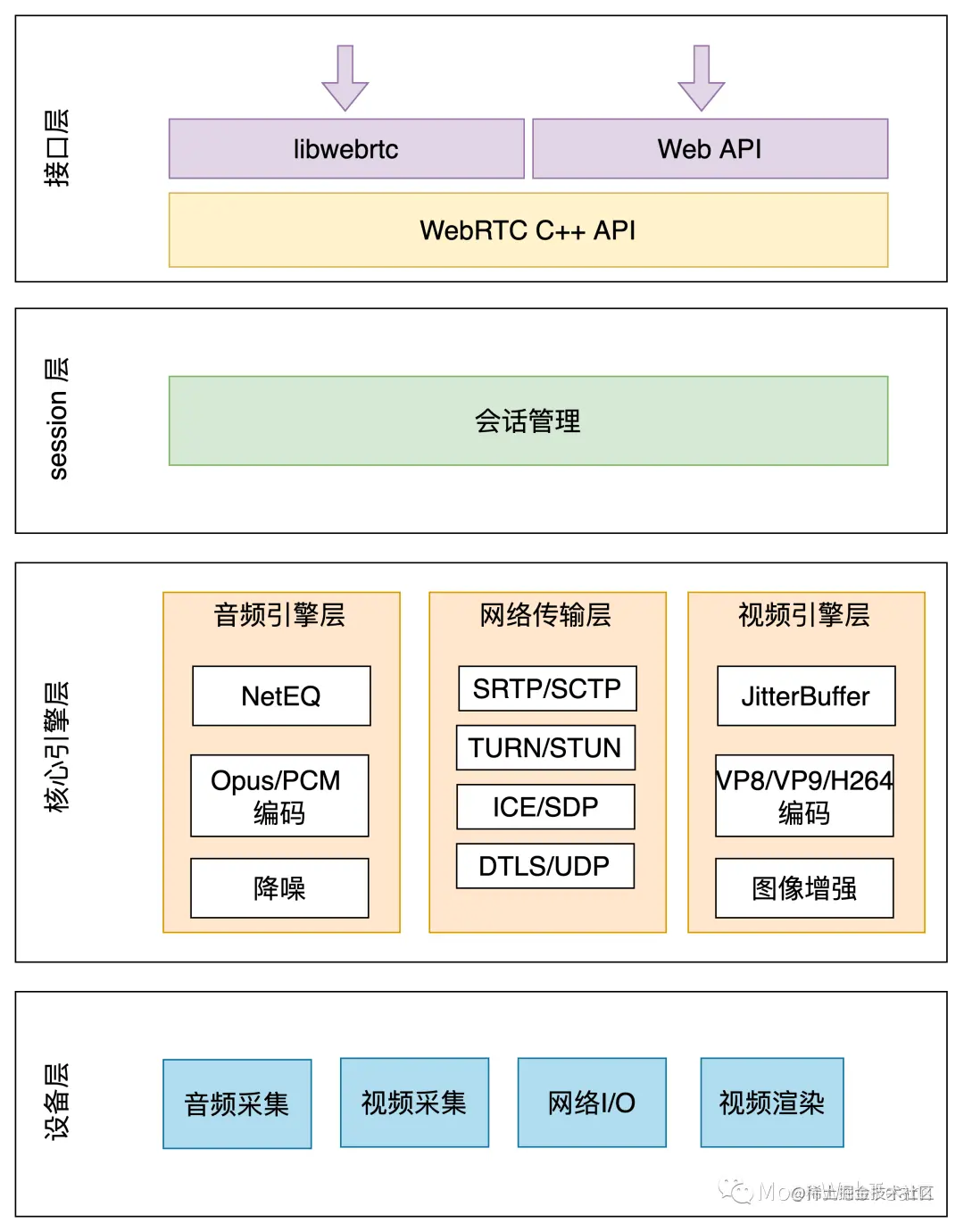 WebRTC的架构分为 4 层,分别是: