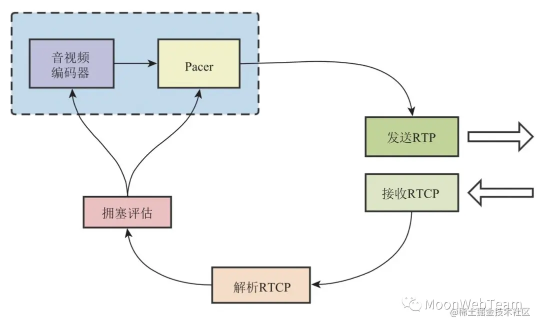 这个过程,为了保证音视频的实时性, WebRTC 内部提供了实时的媒体传输质量反馈,并通过反馈信息,对媒体传输进行调节,从而保证实时性,这就是 WebRTC 的拥塞控制。