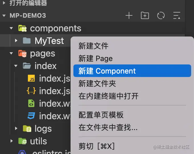 填入组件的名字。它会自动创建4个同名的文件。(这一点和创建页面是一样的)