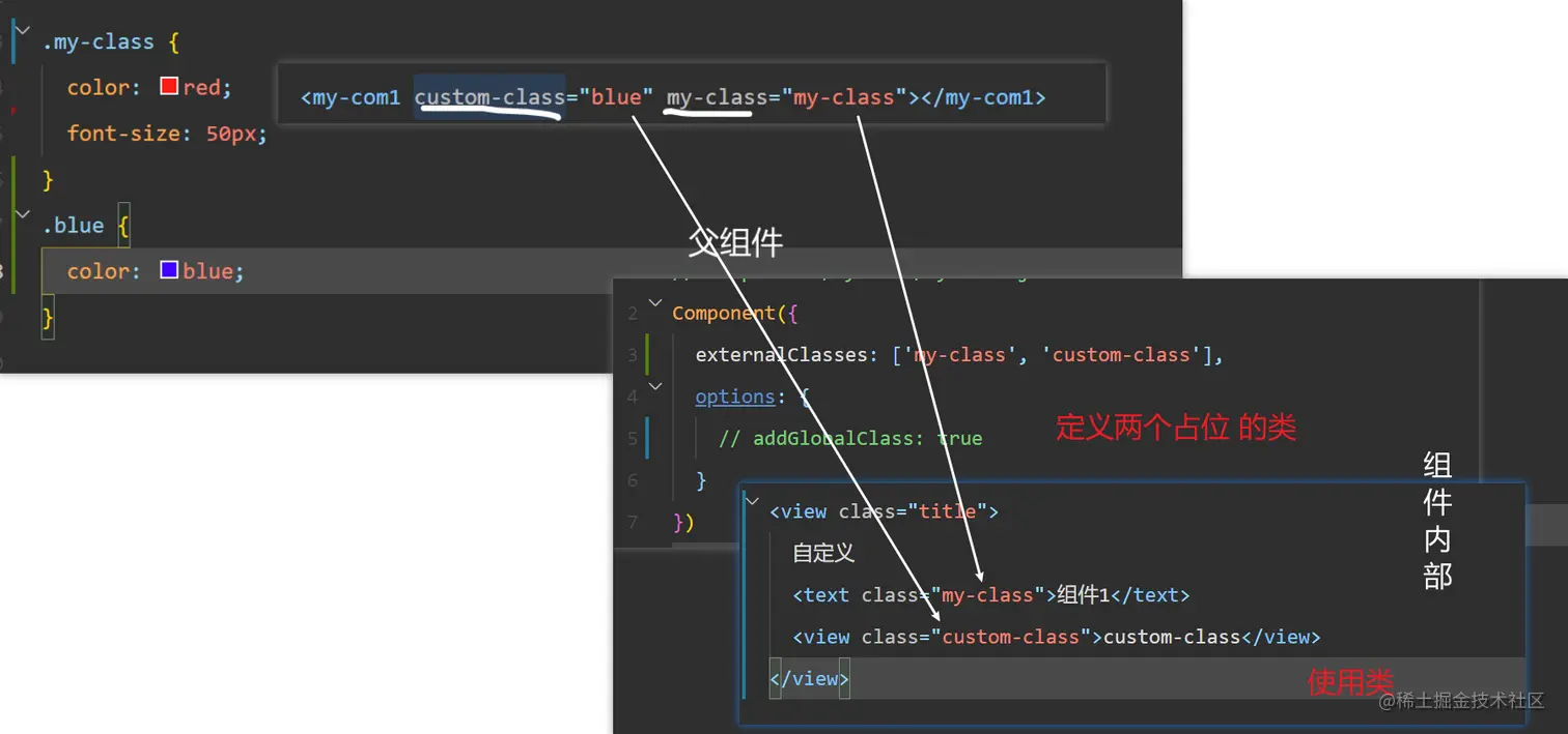外部样式类相当于用一个类名去当占位符,以便于在后期使用时替换成真实的类名,方便添加额外的样式。