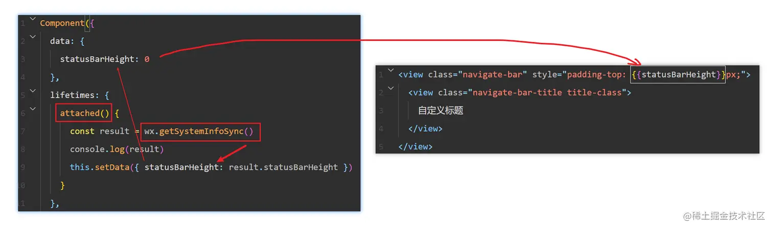在组件的生命钩子函数中,调用wx的getSystemInfoSync,拿到当前设备下,需要空出的距离,然后,就可以设置具体的下移距离啦。