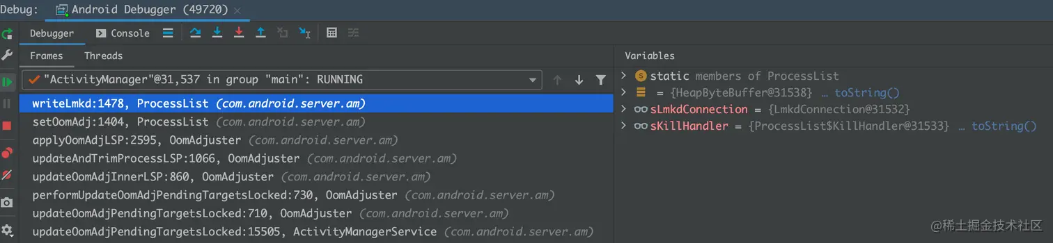 搜索后发现这个原因的杀进程 并不是发生在system_server进程中,而是通过 lmkd进程完成 再通知到system_server进程 在com.android.server.am.ProcessList 中发现 mAppExitInfoSourceLmkd