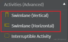 右侧Activities(Advanced)中就有泳道图