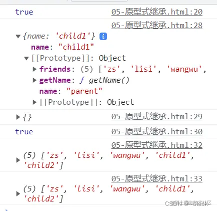 console.log(child1.friends); // ['zs', 'lisi', 'wangwu', 'sunqi', 'child2']