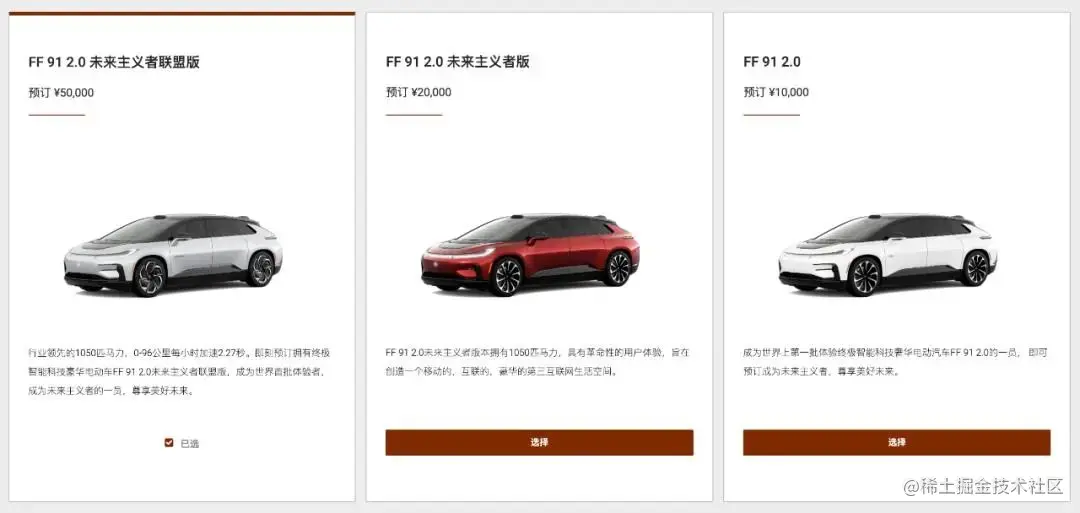 据了解,FF 91系列目前共有三款车型:FF 91 2.0、FF 91 2.0 Futurist(未来主义者版)、FF 91 2.0 Futurist Alliance(未来主义者联盟版)。