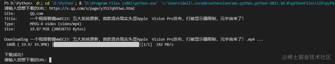 如果下载成功,输出下载成功信息,然后继续等待用户输入URL;