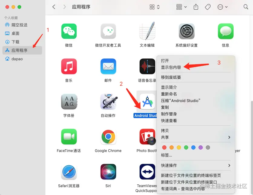 注意:有些Android Studio可能是“jbr”文件,不用管jbr文件,直接复制一份jbr文件在同一路经,再把复制的文件改名为“jre”文件,再按上面操作在jbr文件下新建一个jdk文件,把Contents文件夹复制进去