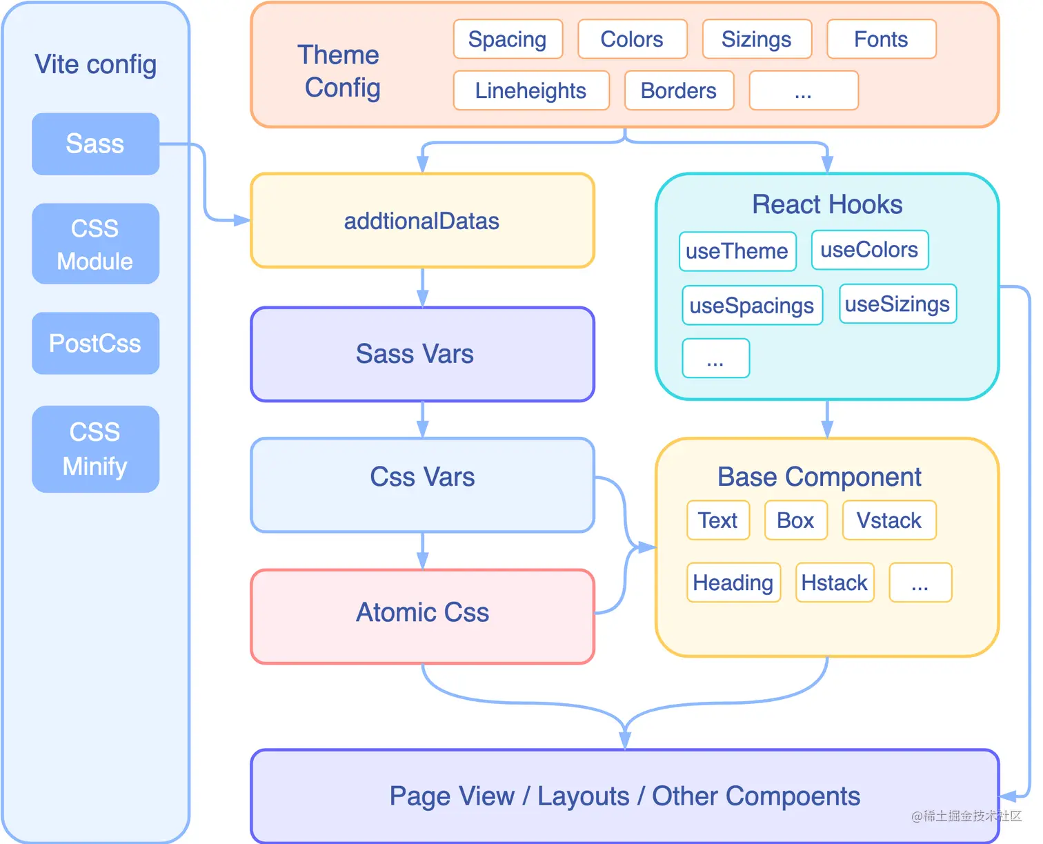 虽然,我们有最佳的主题管理方案。但仅仅靠原子css布局,效率虽然很高,但是写起来很繁琐、冗余。还需要在此基础构建,通用且可复用的组件。比如,基础的layouts组件,文本组件,Flex组件等