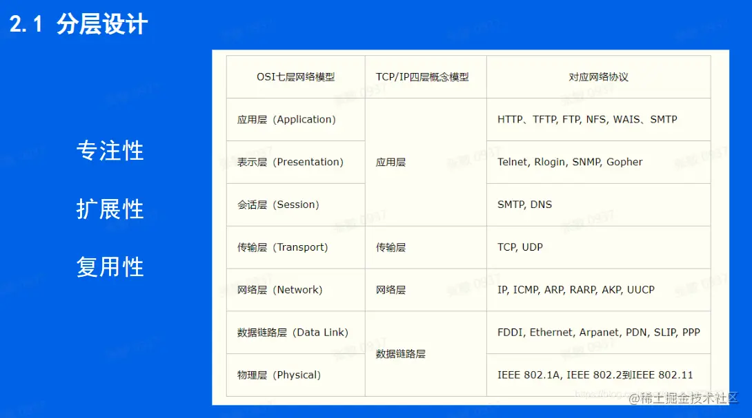 - 模块化设计:通过将功能划分到不同的层次中,每个层次负责特定的功能,使得整个协议结构更加清晰、简单。同时,这种模块化的设计也方便我们对具体问题进行分析和解决。