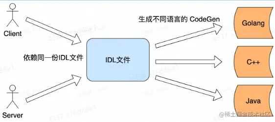 - 生成代码 通过编译器工具把IDL文件转换成语言对应的静态库