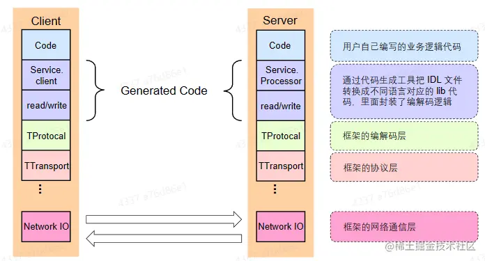 今天这节课主要从本地调用的概念讲起,从本地调用的详细过程过渡到RPC,介绍了RPC的详细模型,向我们讲解了RPC的详细流程,目标以及优点。第二节的内容主要是介绍RPC的分层设计,向我们讲解了RPC如何进行分层,以及每一层的具体作用和功能,及重要的技术点。第三节主要向我们讲解了RPC的一些关键指标,讲明了实现RPC要保证哪方面的性能指标。