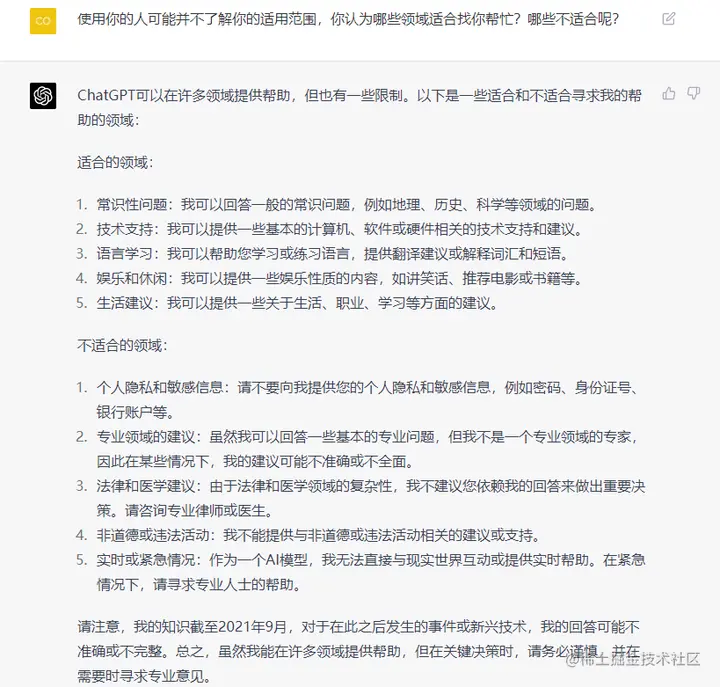我们可以看出,ChatGPT在多领域都具备知识储备,虽然它可以处理自然语言,但在一定程度上仍然需要人类的指导和纠正。