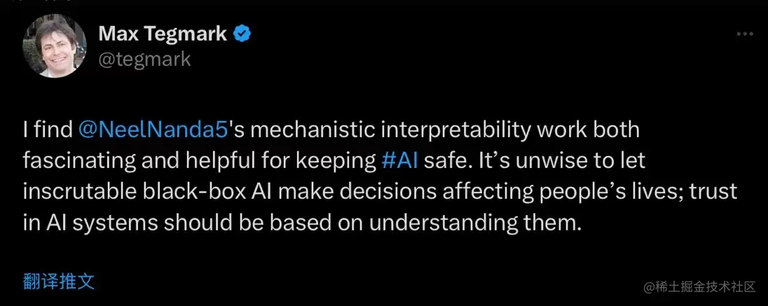 总而言之,在当前这样一个真正的智能 AI 还处在混沌期的时间节点,我们必然不应该“Overtrust AI”,而应该将其限制在一个可控的范围内,而要想使得大模型或者 AI 可靠可控,其必要一步与关键一招就是需要将 AI 的黑盒打开,即对 AI 可解释性研究的关注。